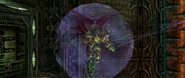 He is protected by 4 shield nodes during final battle.